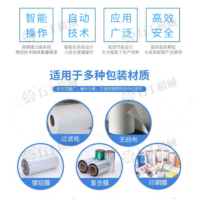 自動(dòng)化:一次性完成拉袋、制袋、充料、打碼、計(jì)數(shù)、封口、送出產(chǎn)品