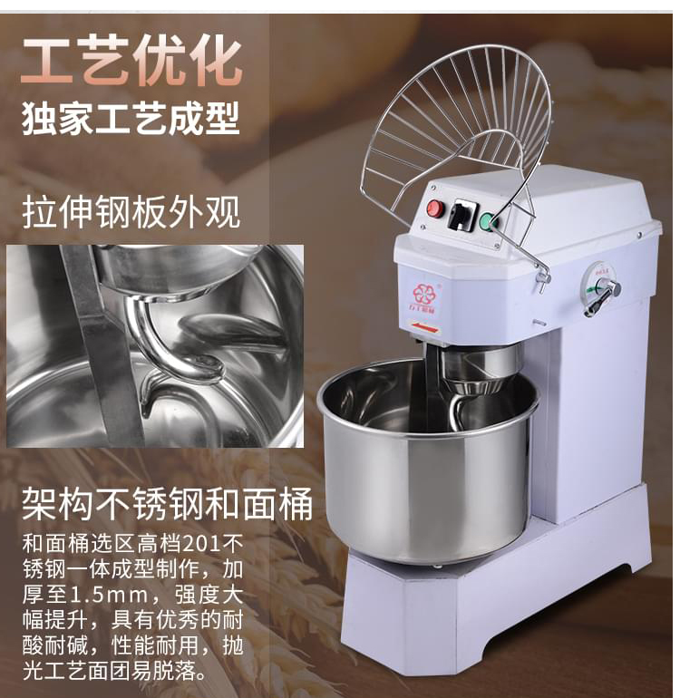 【產(chǎn)品優(yōu)勢】:雙速雙動技術,低溫仿手工和面,強驅(qū)動銅質(zhì)電機,使用壽命遠遠高于普通和面機.