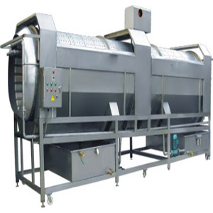 該設(shè)備主要由電機(jī)、滾筒、支架、托輪、板刷、噴淋水管、料斗、水箱、傳動(dòng)軸、電機(jī)架、電氣控制開關(guān)等零部件組成。該機(jī)采用毛刷模仿人工搓洗模原理進(jìn)行設(shè)計(jì)制作,在轉(zhuǎn)動(dòng)中能夠有效清除果蔬表面的污漬、灰塵和農(nóng)殘等。