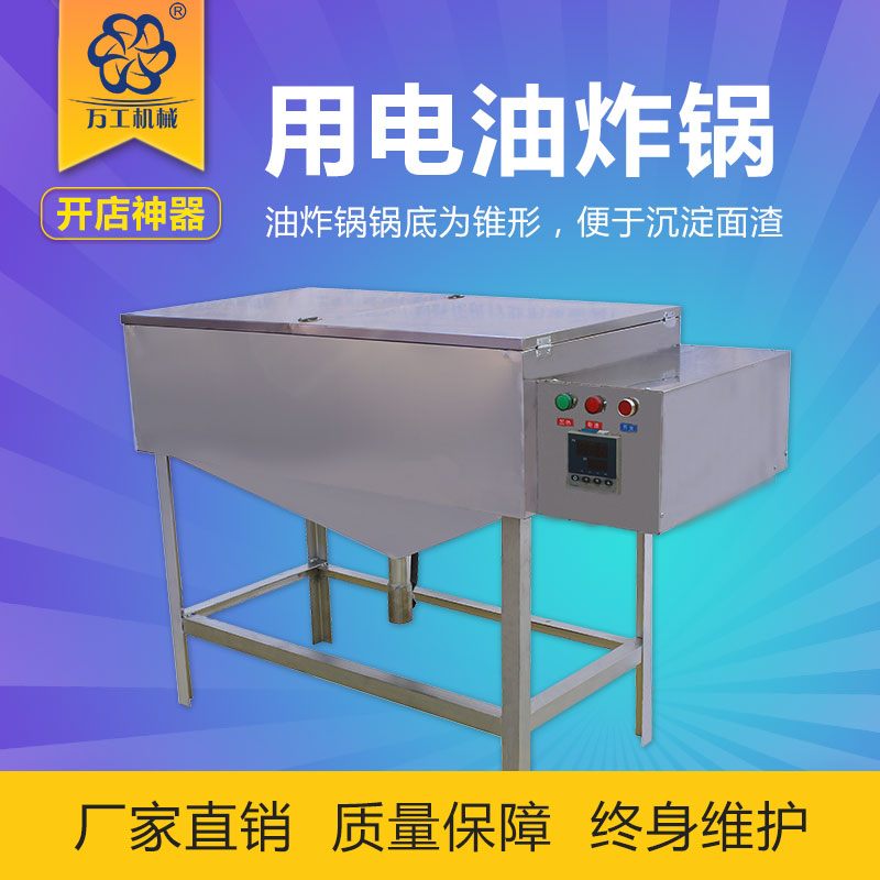 萬工專業(yè)制造各種食品機(jī)械,油炸鍋具有無油煙,渣子不碳化,大小溫度自由可調(diào),可控制,干凈整潔,全為不銹鋼外包。